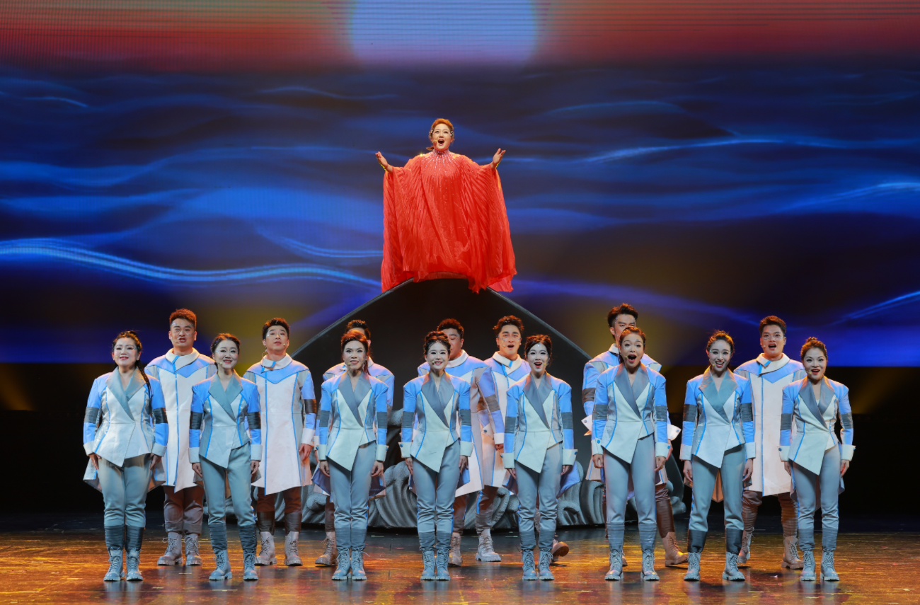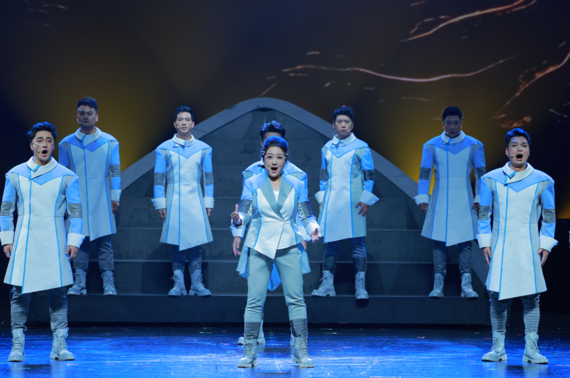 舞台背后,还有一些不为人知的小插曲。“只为追逐心中的那道光,那道光在路上”,第一章节无伴奏纯人声部分,需要演员自行卡准节奏,一旦抽离指挥,大家的拍子便无法一致,自然无法唱好,团队反复调整训练、精细打磨,直至形成肌肉记忆。第二章节的排练也遇到了瓶颈。临比赛前几天,因长时间的高强度训练,导致这一章在排练时演员们的状态直线下滑,演唱节奏滞后,经过两天休息调整状态后重回正轨。当中对每一个细节的苛求,都凝聚着团队对艺术的执着。