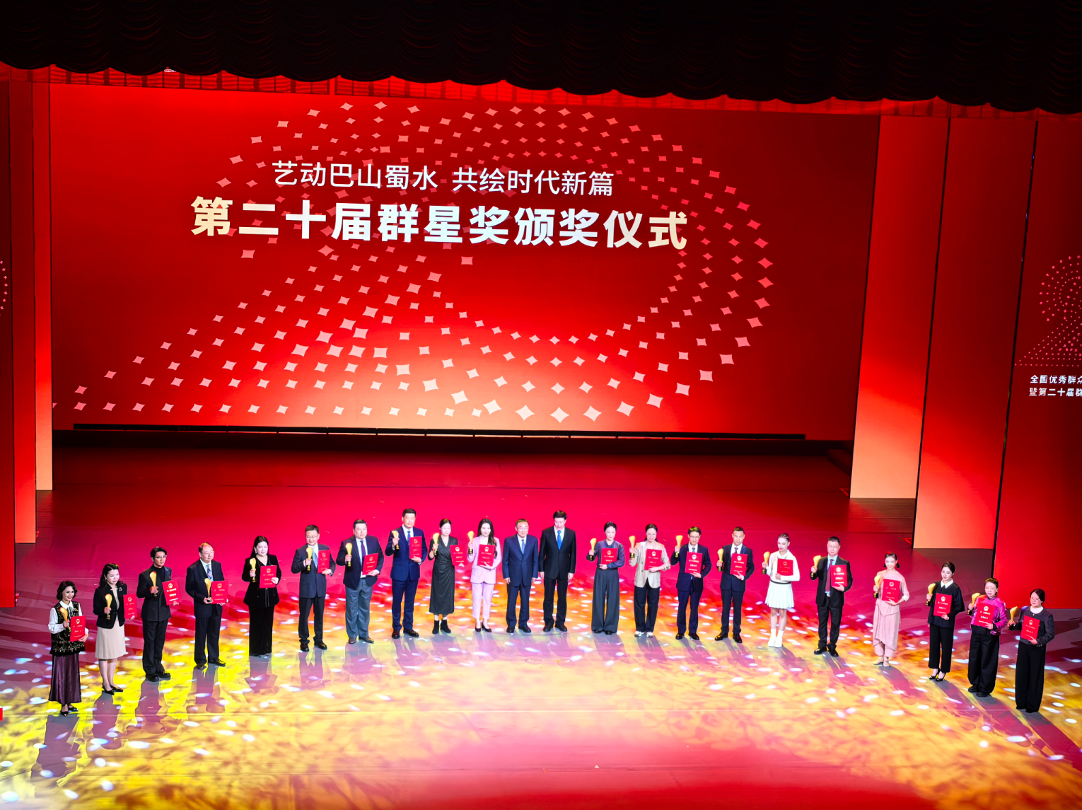 作为中国群众文艺领域的最高政府奖,本届“群星奖”共有1996个演出单位的5039个作品(团队)、29.5万群众文艺工作者参评,经过初选、复评及终评,最终从全国报送的数千部作品中评选出60个获奖作品(团队),涵盖音乐、舞蹈、戏剧、曲艺、广场舞、群众合唱六大门类。其中,音乐类评选竞争激烈,全国共有133件优秀音乐作品进入复赛,经严格评审,仅有27件作品入围总决赛,并最终评选出10件作品授予群星奖大奖。《追光》以其独特的艺术构思与丰富的舞台呈现,成为本届评选中闪耀的星。